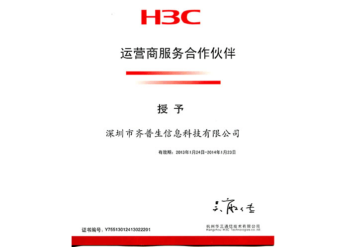 H3C運營商服務(wù)合作伙伴證書