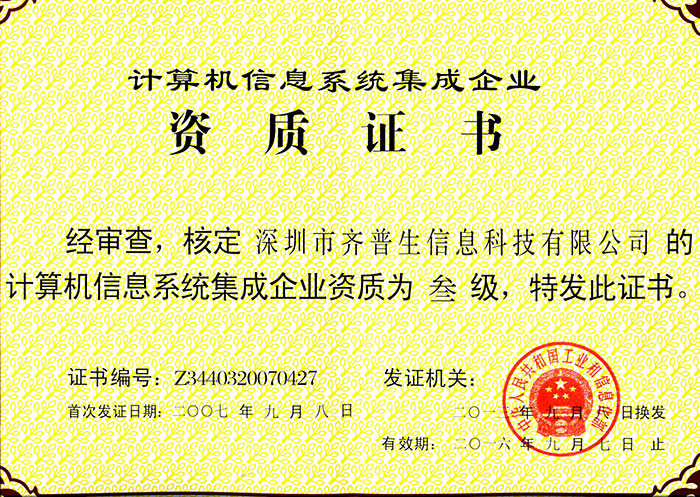 計算機(jī)信息系統(tǒng)集成企業(yè)資質(zhì)證書(三級)
